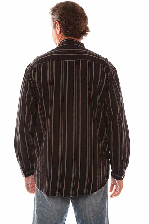 This classic style shirt is both durable and enduring. One of Scully’s best selling shirts with traditional Old West styling in dark black, dark blue, and white stripe. Features include: