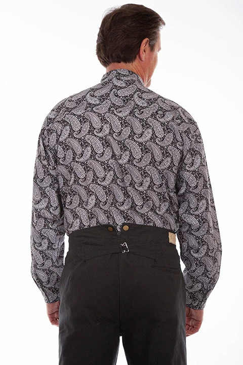If you love paisley, this is the perfect shirt for you!. The comfort and durability of these cotton shirts combined with this classic design make this an appropiate shirt for any activity. It features a band collar, a full pewter button front closure and a left chest pocket.