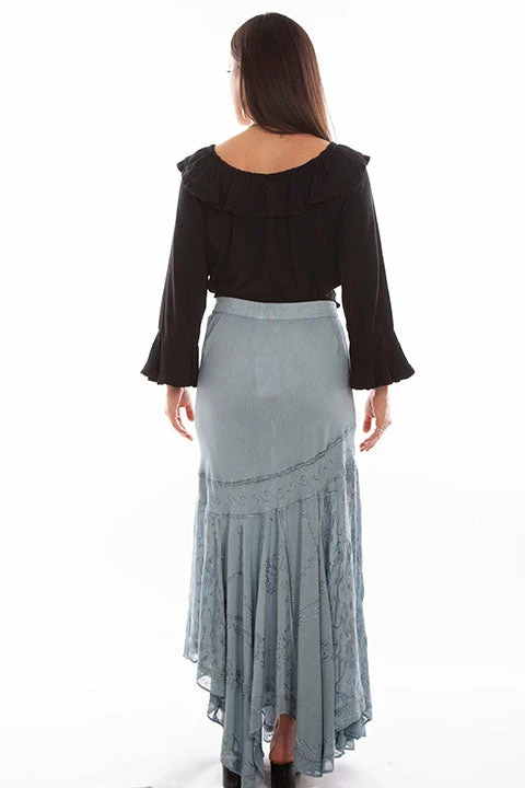 Pretty, feminine and easy-to-wear elastic waist skirt with drawstring tie for comfort. Uneven hemline shows off your favorite boots or dancing shoes. Choose Copper or new colors Burgundy (Red) and Ash Grey (Grey)!