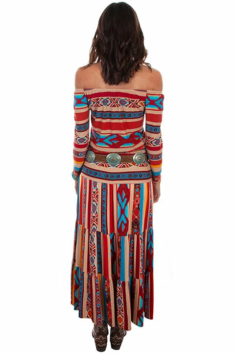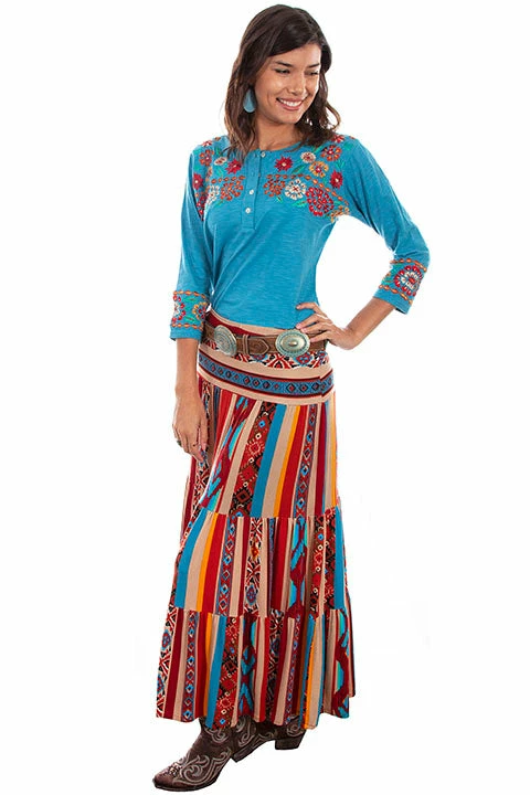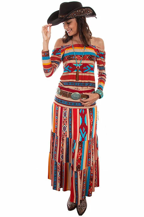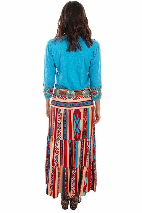 Serape style is all the rage, add to your boho wardrobe! This serape maxi skirt features three horizontal tiers that allow a free flowing movement. Pair with matching serape tops, shown here, or with your favorite solid top.
