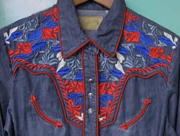 If you are a fan of Scully’s shirts, this one will be familiar to you as it is one of their most popular styles and is offered in a variety of color combinations. Color combination of deep denim body with multi color floral embroidered yokes and cuffs.