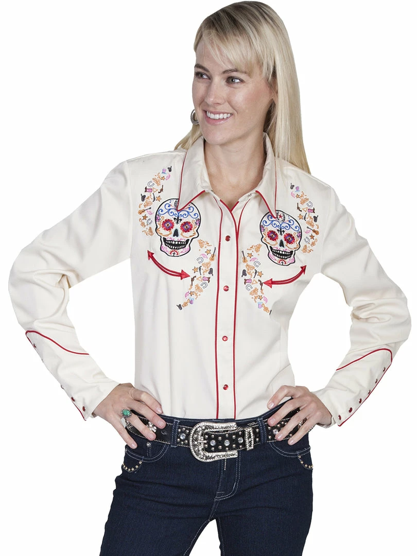 Classic Western fashion is all about details, details, details! This stunning design joins the Scully fashion wardrobe family. Celebrate Day of the Dead year ’round!