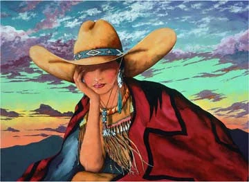 “I try to paint a figure that portrays the strong independent cowgirl spirit, while trying to grasp an accurate reflection of the western cowgirl culture. I stylize, emotionalize, and romanticize my cowgirls.”