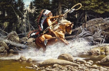 Frank McCarthy’s dynamic paintings frequently featured the people of the West with a special emphasis on the Plains Indian, mountain men and cavalry that comprised the lore and lure of the Old West.