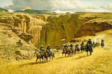 Frank McCarthy’s dynamic paintings frequently featured the people of the West with a special emphasis on the Plains Indian, mountain men and cavalry that comprised the lore and lure of the Old West.