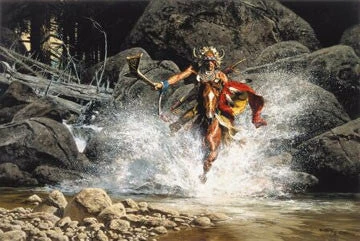 Frank McCarthy’s dynamic paintings frequently featured the people of the West with a special emphasis on the Plains Indian, mountain men and cavalry that comprised the lore and lure of the Old West.