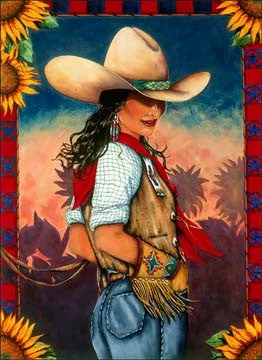 “I try to paint a figure that portrays the strong independent cowgirl spirit, while trying to grasp an accurate reflection of the western cowgirl culture. I stylize, emotionalize, and romanticize my cowgirls.”
