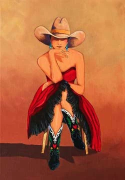 “I try to paint a figure that portrays the strong independent cowgirl spirit, while trying to grasp an accurate reflection of the western cowgirl culture. I stylize, emotionalize, and romanticize my cowgirls.”
