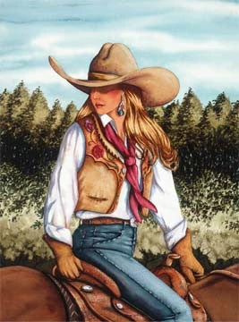 “I try to paint a figure that portrays the strong independent cowgirl spirit, while trying to grasp an accurate reflection of the western cowgirl culture. I stylize, emotionalize, and romanticize my cowgirls.”