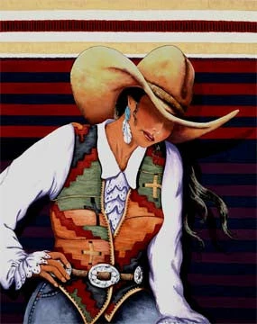 “I try to paint a figure that portrays the strong independent cowgirl spirit, while trying to grasp an accurate reflection of the western cowgirl culture. I stylize, emotionalize, and romanticize my cowgirls.”