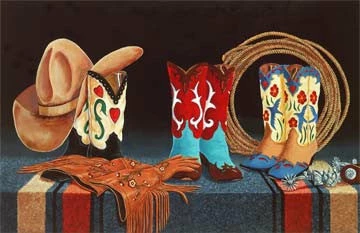 Doreman Burns’ watercolor compositions of the American Cowgirl are a fusion of light and shadow, as well as his own imagination and reality, both past and present. His unusual use of the watercolor medium produces clean, sharp images, and brings his subject matter to life with vibrant color and design.