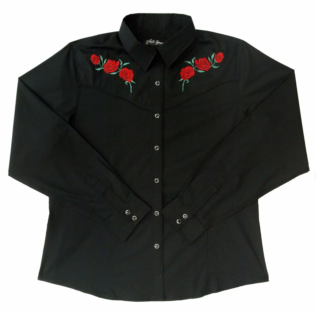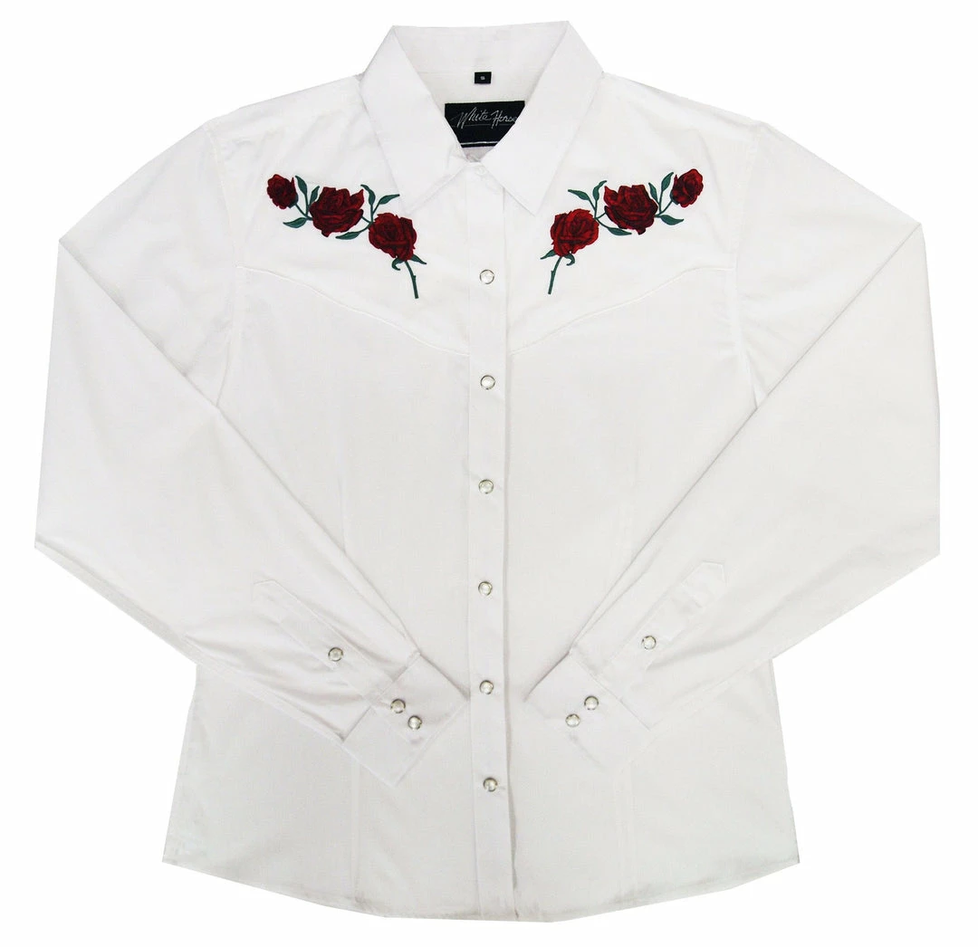 White Horse Apparel Ladies’ Women’s Embroidered Western Shirt: White Horse Roses