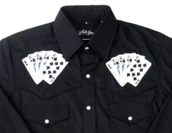 This long sleeve Western shirt features classic embroidered Royal Flush Card design.