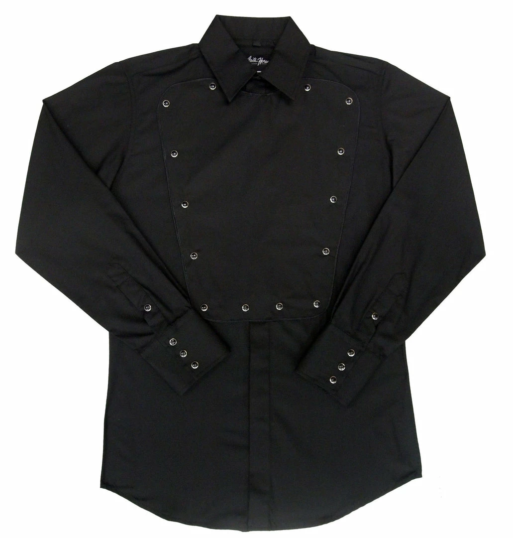 This long sleeve classic Old West style bib shirt features pearl snaps. Other features include: