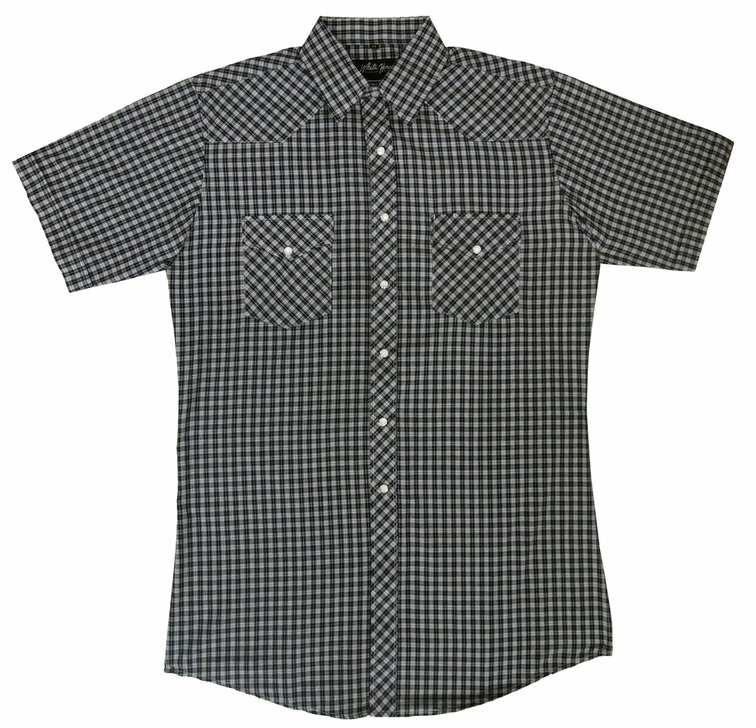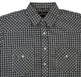 This short sleeve cotton blend navy / white plaid Western shirt features:
