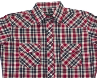 This short sleeve cotton blend red/black plaid casual Western shirt features: