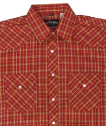 This short sleeve cotton blend offered in red/gold/white plaid.
